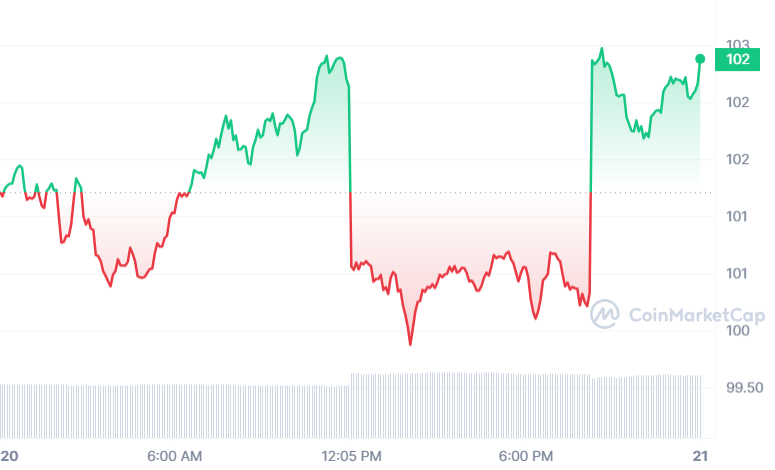 As of today, the current price of Quant is $102.27 USD, and the 24-hour trading volume stands at $14,022,812 USD. The price is showing a positive trend with a 1.18% increase in the last 24 hours. According to CoinMarketCap, Quant holds the 39th rank, with a live market capitalization of $1,234,697,704 USD. The circulating supply of Quant coins is 12,072,738, with a maximum supply of 14,881,364 coins. Our platform keeps the QNT to USD price updated in real-time.