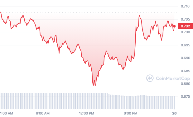 As of today, the current price of XRP against USD is $0.701243, and it is updated in real-time. The 24-hour trading volume for XRP is $1,777,017,043 USD. Over the last 24 hours, XRP has experienced a 0.82% decrease in its value. Currently ranked at #4 on CoinMarketCap, XRP’s live market cap is $36,930,904,066 USD. The total circulating supply of XRP coins is 52,664,942,014, with a maximum supply of 100,000,000,000 XRP coins.