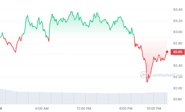 As of today, the current price of Litecoin against the US Dollar is $82.60 USD, and its 24-hour trading volume is $257,206,620 USD. The cryptocurrency has experienced a slight decrease of 0.23% in value over the last 24 hours. In the CoinMarketCap ranking, Litecoin holds the 12th position, with a live market capitalization of $6,072,197,652 USD. There are currently 73,512,620 LTC coins in circulation, out of a total maximum supply of 84,000,000 LTC coins. Please note that these figures are updated in real-time.