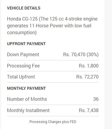 Honda CG 125 – 36 Months Installment Plan