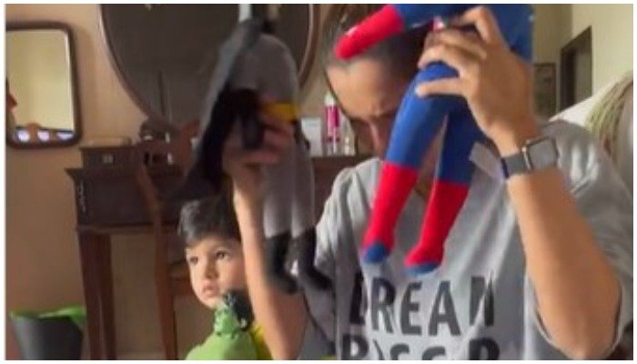 Sania appears to be troubled by her son Izhaan’s dissatisfaction with some toys.