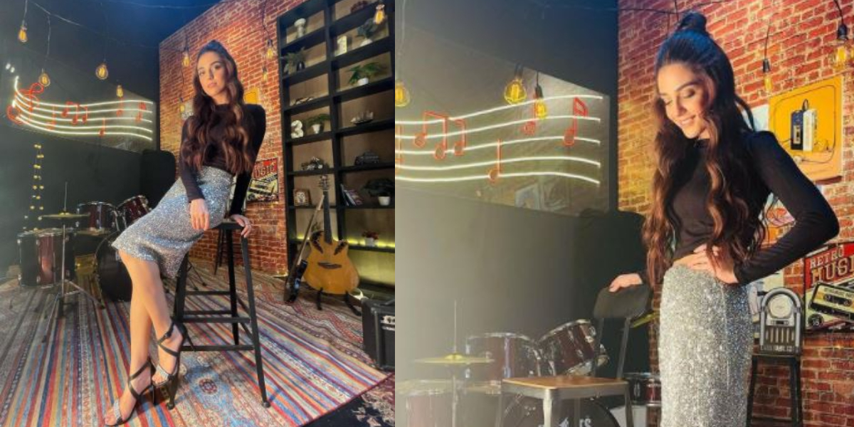 Maya Ali, in her recent clicks, effortlessly channels some wardrobe inspo for her fans donning an all-black long-sleeved shirt and paired it with a silver shimmery skirt.