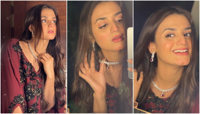 Hira took to her Insta to share a few eye-catchy images in a vibrant maroon attire with a fine piece of jewelry.