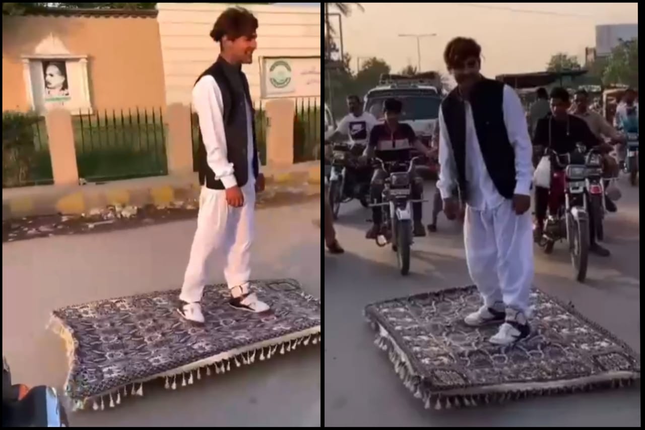 A man in Pakistan has been making waves on social media after videos of him riding his carpet went viral. Traveling on the busy roads of the country, the man has managed to make a spectacle out of himself as on-lookers seem to love his ride. With people filming him left and right, various videos have popped up on social media and people are calling him a ‘desi Aladdin riding his carpet.’
