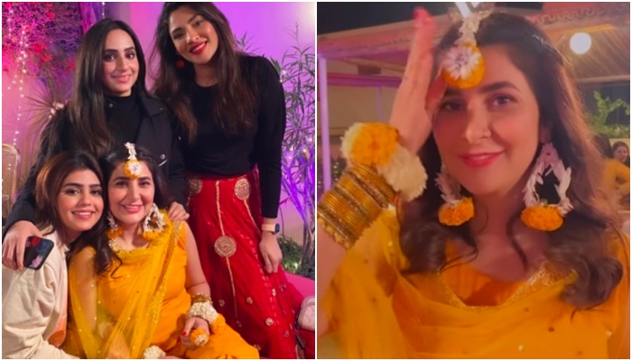 Habib looks adorably elegant in a yellow mayun attire and her bestie Sana Fakhar was seen dancing happily at the event.