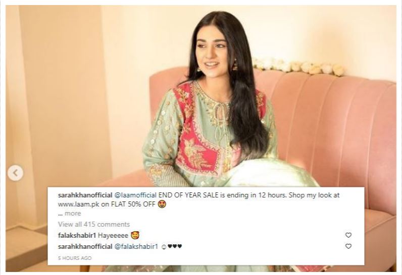 Falak did the sweetest comment on the picture with the lovely gesture to express his fondness for her. He never fails to express his feelings for Sarah on social media as well as in real life.