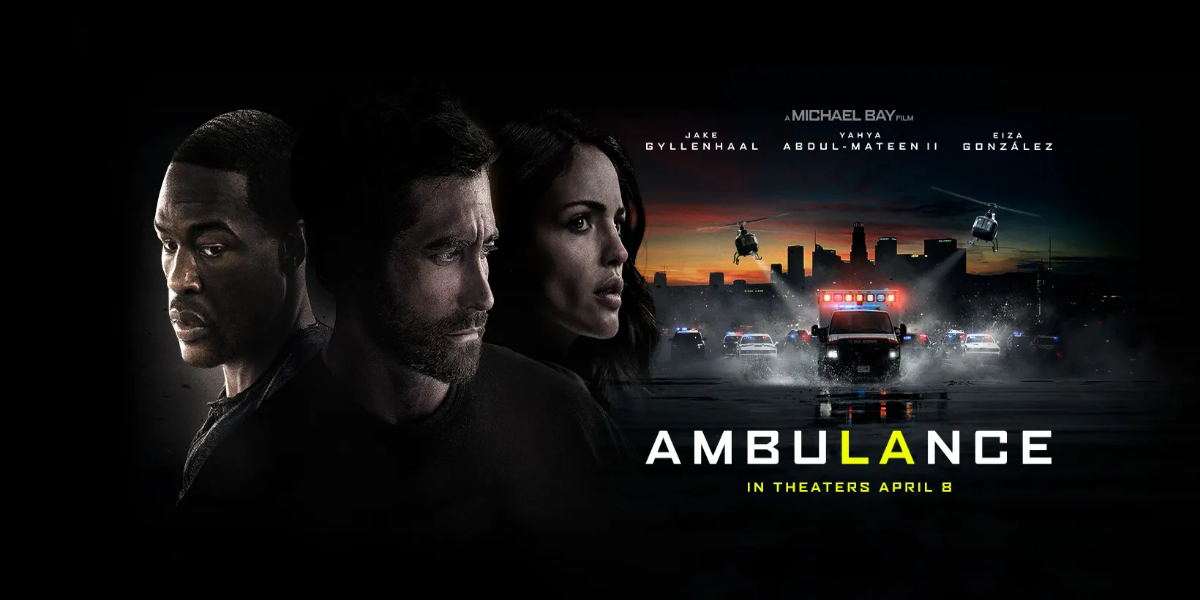 Ambulance follows adoptive brothers Danny and Will Sharp (Jake Gyllenhaal and Yahya Abdul-Mateen II, respectively) as they attempt to steal $32 million from a Los Angeles bank. The criminals are caught in a high-speed chase after their getaway goes haywire. However, they end up hijacking an ambulance carrying a badly injured cop and his paramedic.