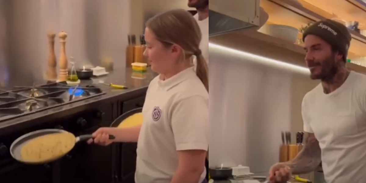 Watch: David Beckham and Harper Seven flipping pancakes