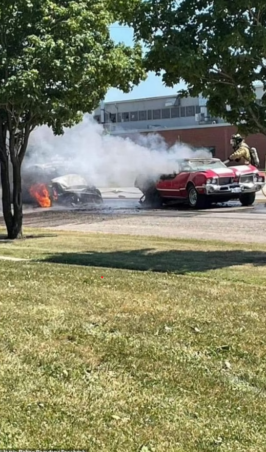On the well-known social media platform, a picture of the incident’s aftermath circulated, showing smoke coming from the red and white convertible.