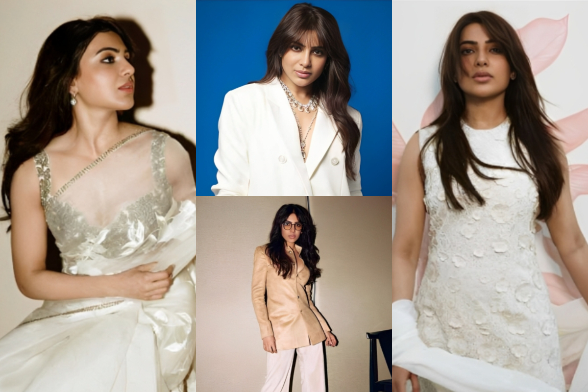 Setting the stage for her neutral fashion conquest, Samantha wowed in a white co-ord set that exuded pure elegance. A plunging neckline and rolled-up sleeves added a playful touch to her white blazer, perfectly paired with wide-legged trousers. With impeccable styling by Pallavi Singh, Samantha effortlessly commanded attention with dazzling diamond accessories and flawless makeup.