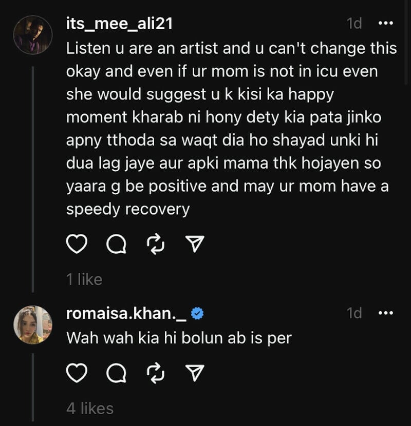The distressing ordeal did not end there. A comment on the post displayed further insensitivity, suggesting that Khan should not “spoil someone’s happy moment.” In response, Khan expressed her dismay.