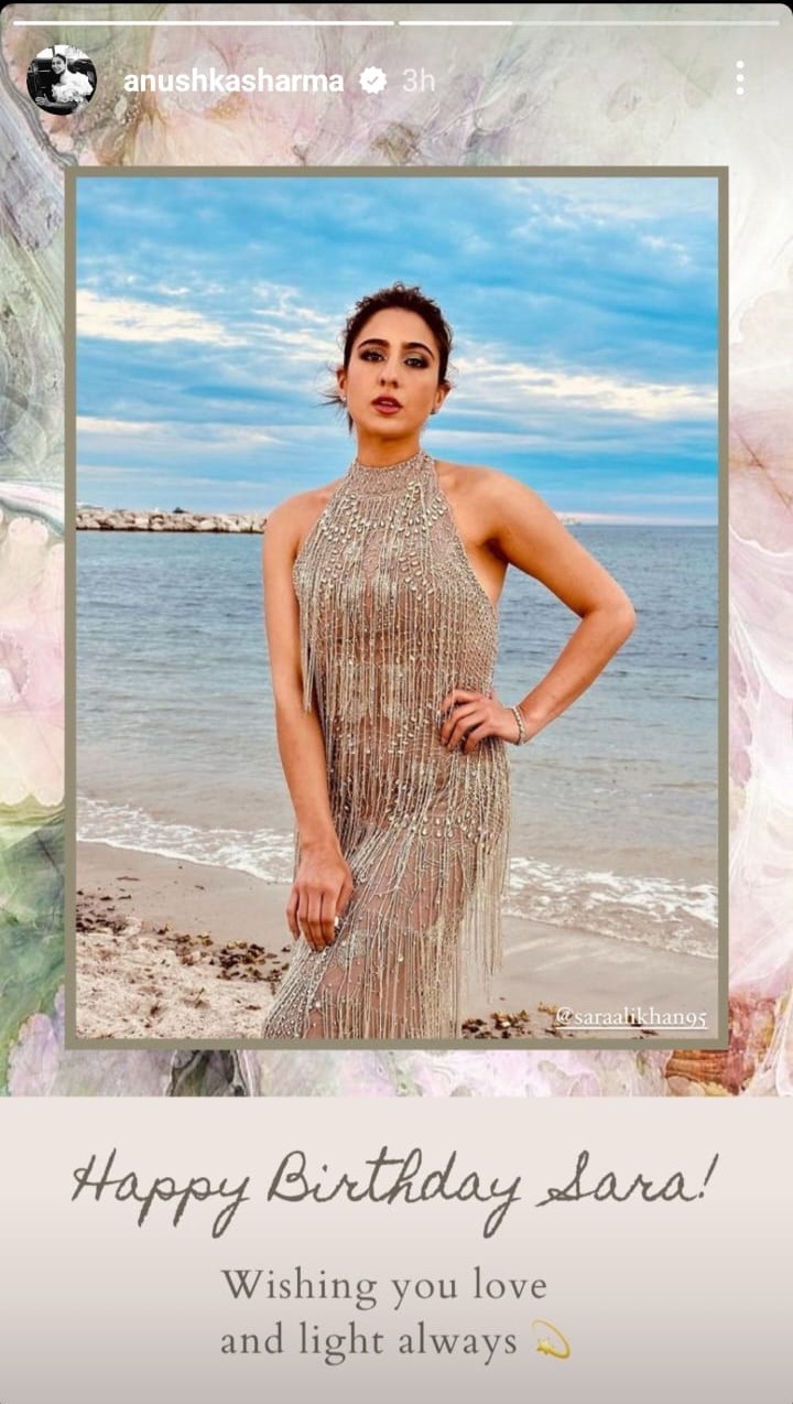 Ananya Panday, Sara’s B-town buddy, also joined the celebrations with a delightful snapshot and a heartwarming message. Anushka Sharma shared greetings too, encapsulating the wishes with a photo from the Cannes Film Festival.
