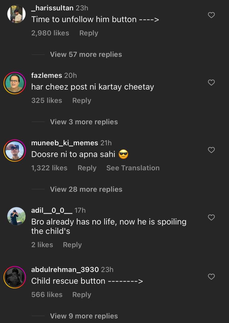 Amidst this impassioned discussion, Mathira, a notable presence in television and social media, emerged as a supporter of Feroze Khan. She took to the comment section of the post, expressing her sentiments with the words, “Love is the ‘only’ answer.” According to her perspective, there should be no place for shame when a father openly exhibits his love for his own child.
