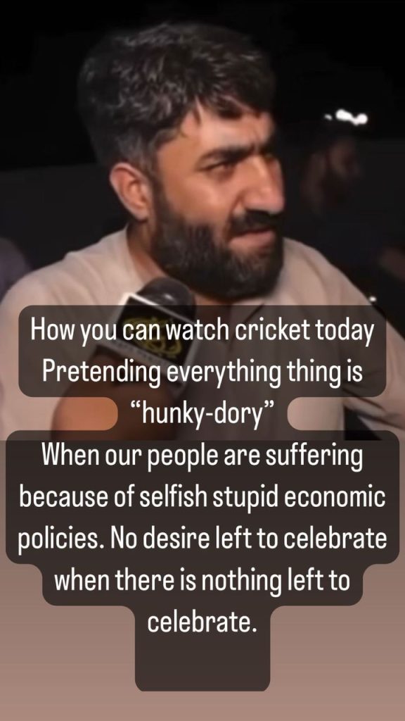 Ahmed Ali Butt raises a poignant question: How can we immerse ourselves in a game of cricket, pretending that all is well, while our fellow countrymen are crumbling under the weight of disastrous economic policies? He conveyed this message through his Instagram account.