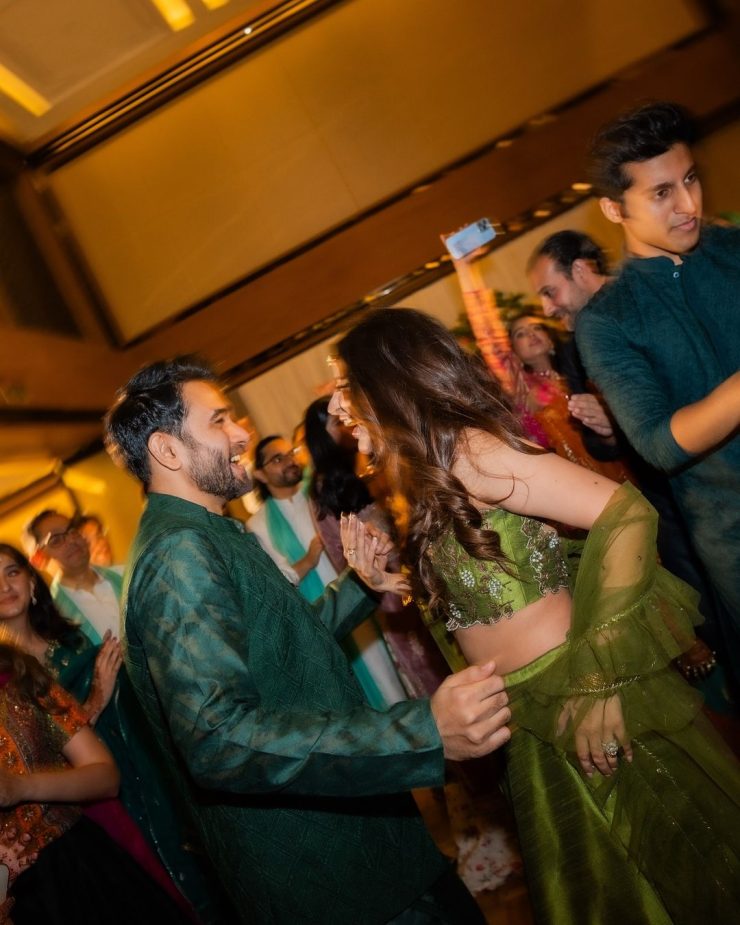 The couple is currently in Dubai for a wedding celebration. Saboor looked stunning in a beautiful green ensemble, while Ali complemented her perfectly in a matching green sherwani. The two were seen dancing, relaxing, and thoroughly enjoying the festive atmosphere. Their joyful moments were captured in several beautiful photographs from the event.