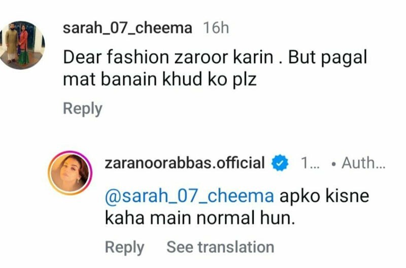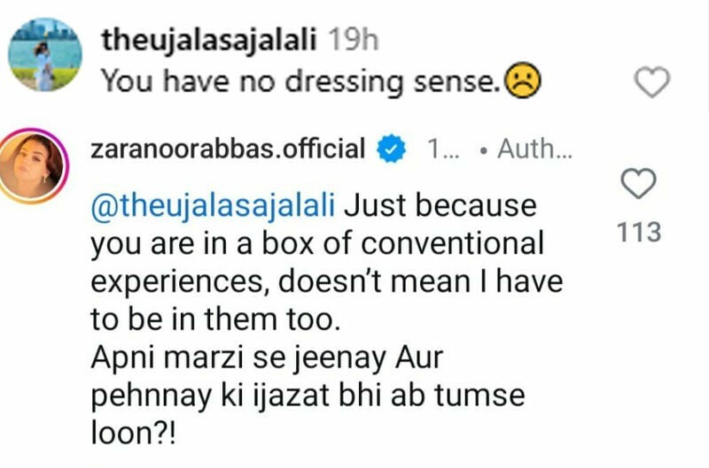 Zara Noor Abbas fires back at comments criticizing her dressing sense