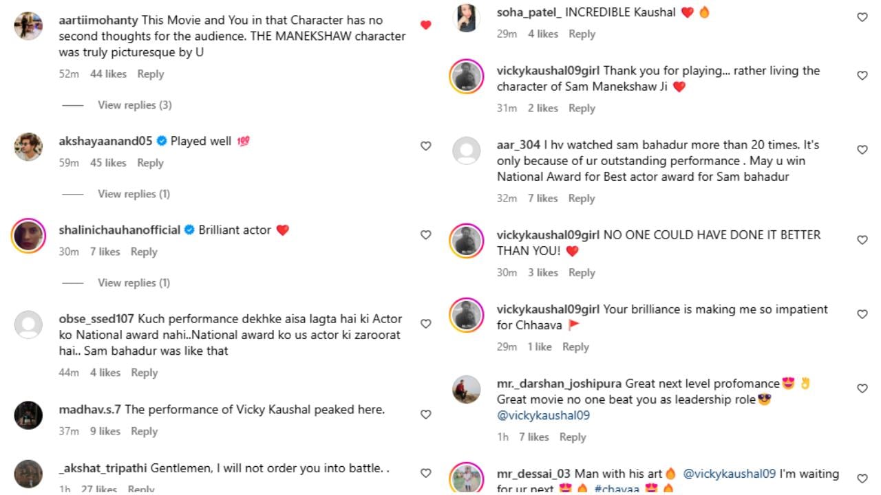 Fans flooded the comments section, praising Vicky’s performance in the film. A fan wrote, “This Movie and You in that Character has no second thoughts for the audience.”
