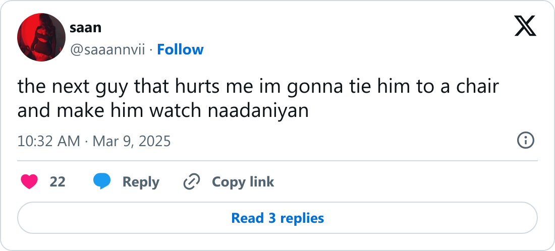 Social media, particularly X (formerly Twitter), was relentless in its critique. Many users expressed their frustration, with one particularly harsh comment stating, “The next person who hurts me, I’m going to tie them to a chair and make them watch Naadaaniyan.”