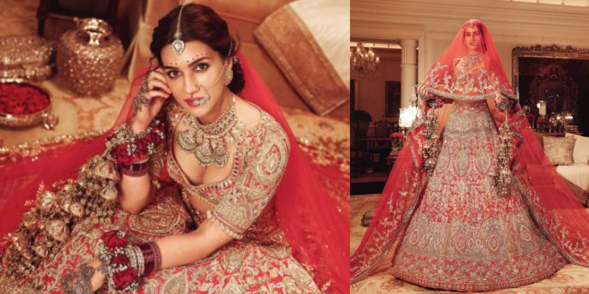 Kriti Sanon transformed into the perfect Indian desi royal bride, donning an intricate red lehenga that embodies the essence of Indian tradition with jewel infused sleeves and a gorgeous dupatta that contained fine embroidery.