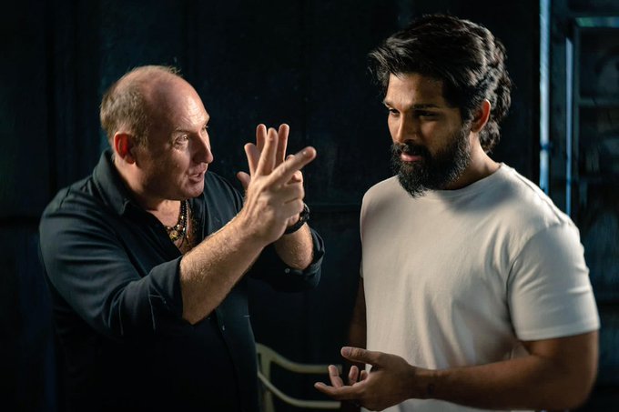 Finally! Pushpa: The Rule, the long-awaited successor to the Pushpa franchise, has finally been released. Social media shows Allu Arjun with cinematographer Miroslaw Kuba Brozek on set. AA attentively listens to Brozek.