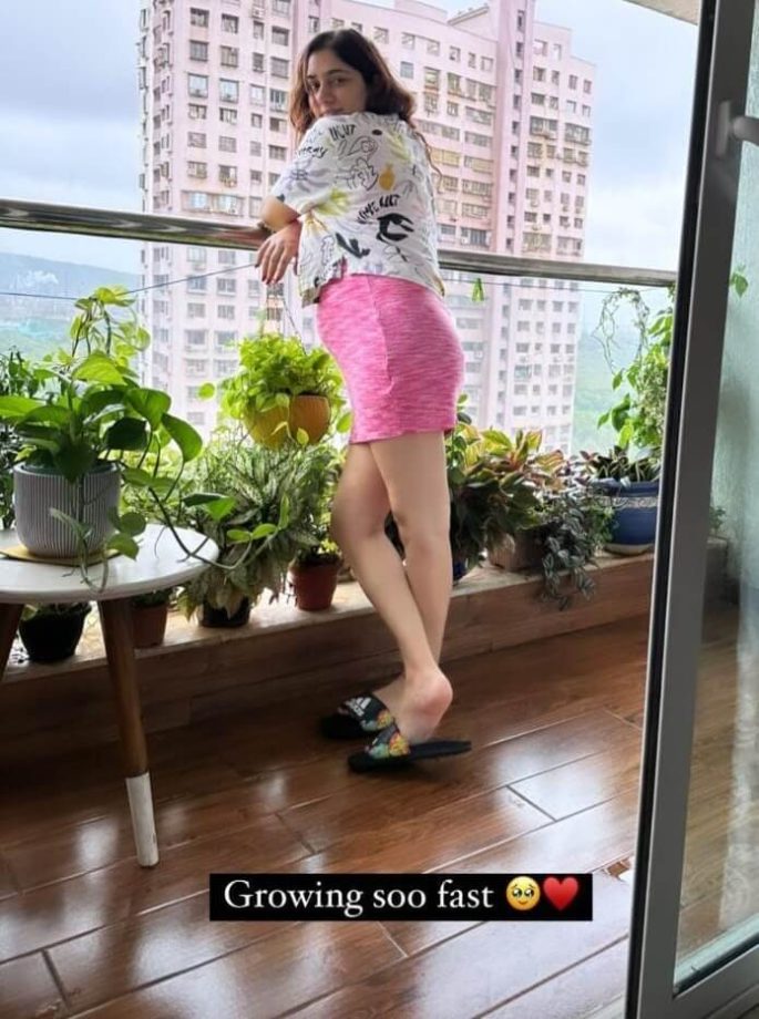 In an emotional story, Disha expresses her amazement at how quickly her baby bump is growing. She treats her little one to the serenity of the balcony and playfully flaunts her bump in another story, hashtagging it as #mommysclick.