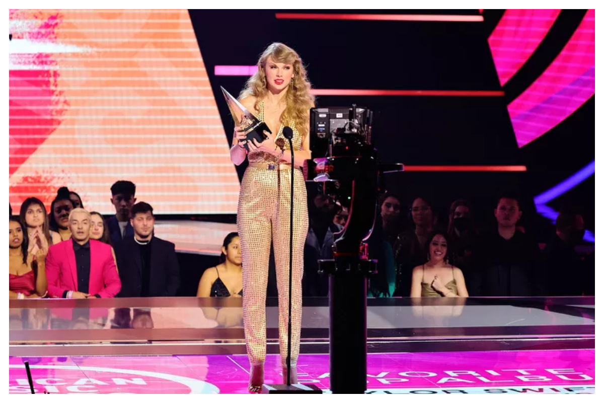 Taylor Swift Makes Surprise AMAs Appearance in Golden Jumpsuit