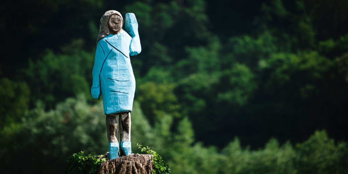 The sculpture, carved with a chainsaw into a living linden tree trunk, was originally met by locals with mixed opinions. In 2019, one resident told an international news organization that the Melania depicted in the sculpture “does not look as beautiful as she normally is.”