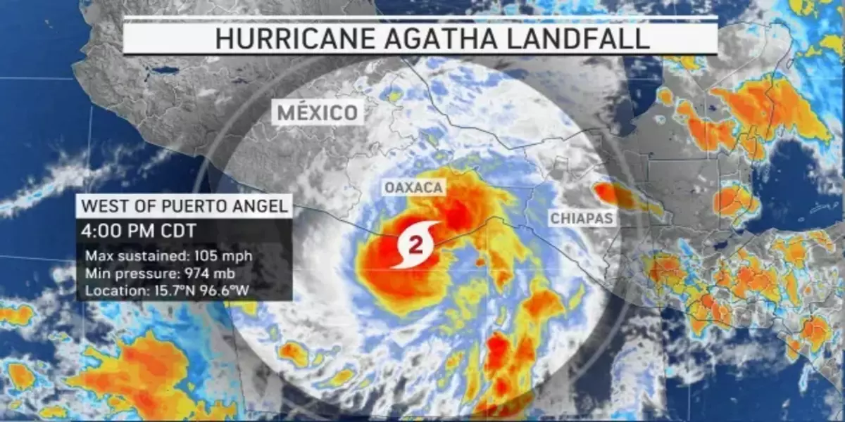 After making landfall as a Category 2 hurricane in southern Mexico, Agatha was downgraded to a tropical storm