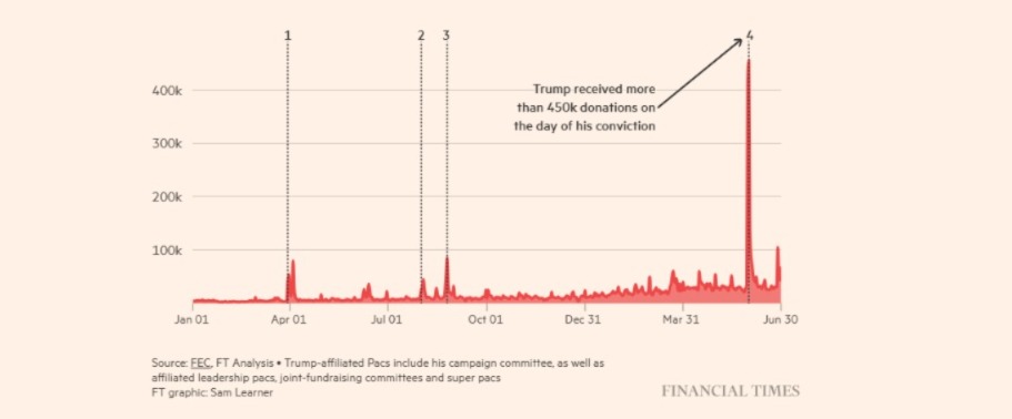 Trump has faced multiple criminal charges, including being the first former president convicted of a felony. He claims these charges are part of a political “witch hunt” against him, but they have helped his fundraising efforts.