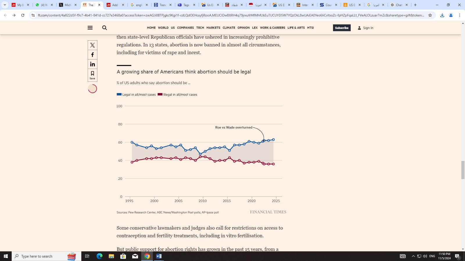 Protecting access to abortion is a key part of Harris’s campaign, while Trump has boasted about his role in overturning the landmark Roe v. Wade decision. Public support for abortion rights has increased over the years.