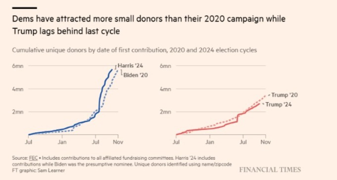 This election is set to be the most expensive ever, with combined fundraising reaching nearly $4 billion. Harris’s campaign has seen significant support from individual donors, while Trump’s funding relies heavily on wealthy individuals.