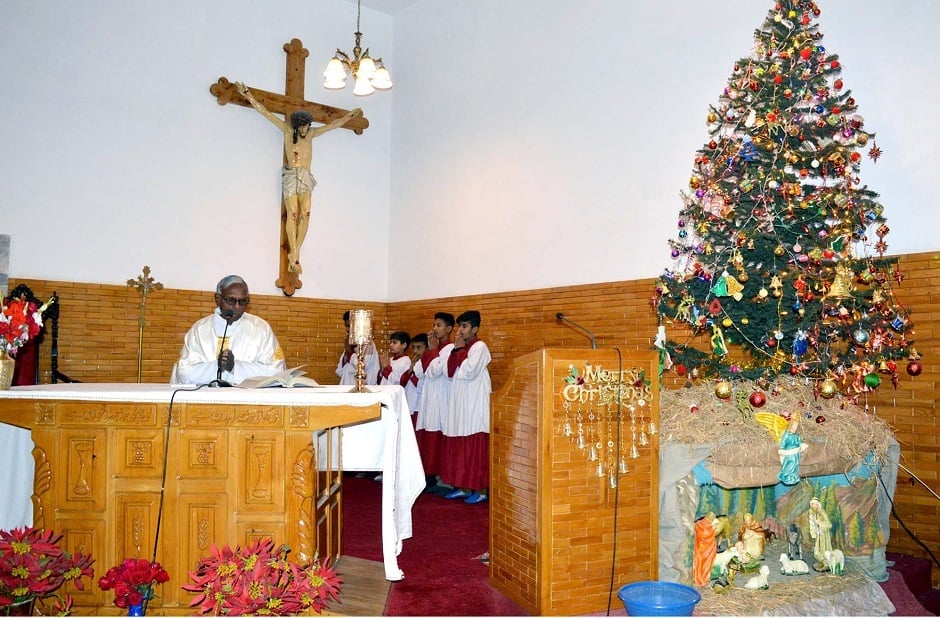 Christian devotees pray at Saint Andrew Church in Karachi as they celebrate Christmas on December 24, 2021. — AFP