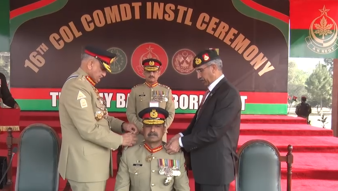 Chief of the Army Staff (COAS) General Qamar Javed Bajwa formally installed Quetta Corps Commander Lieutenant General Sarfraz Ali as the colonel commandant of the Azad Kashmir Regiment of the Pakistan Army, said the military’s media wing on Wednesday.