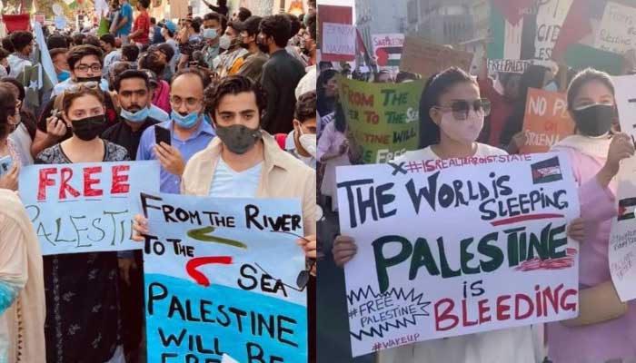 Pakistani stars showed support for Palestine on the streets of Karachi to raise their voice for the freedom of Palestine.