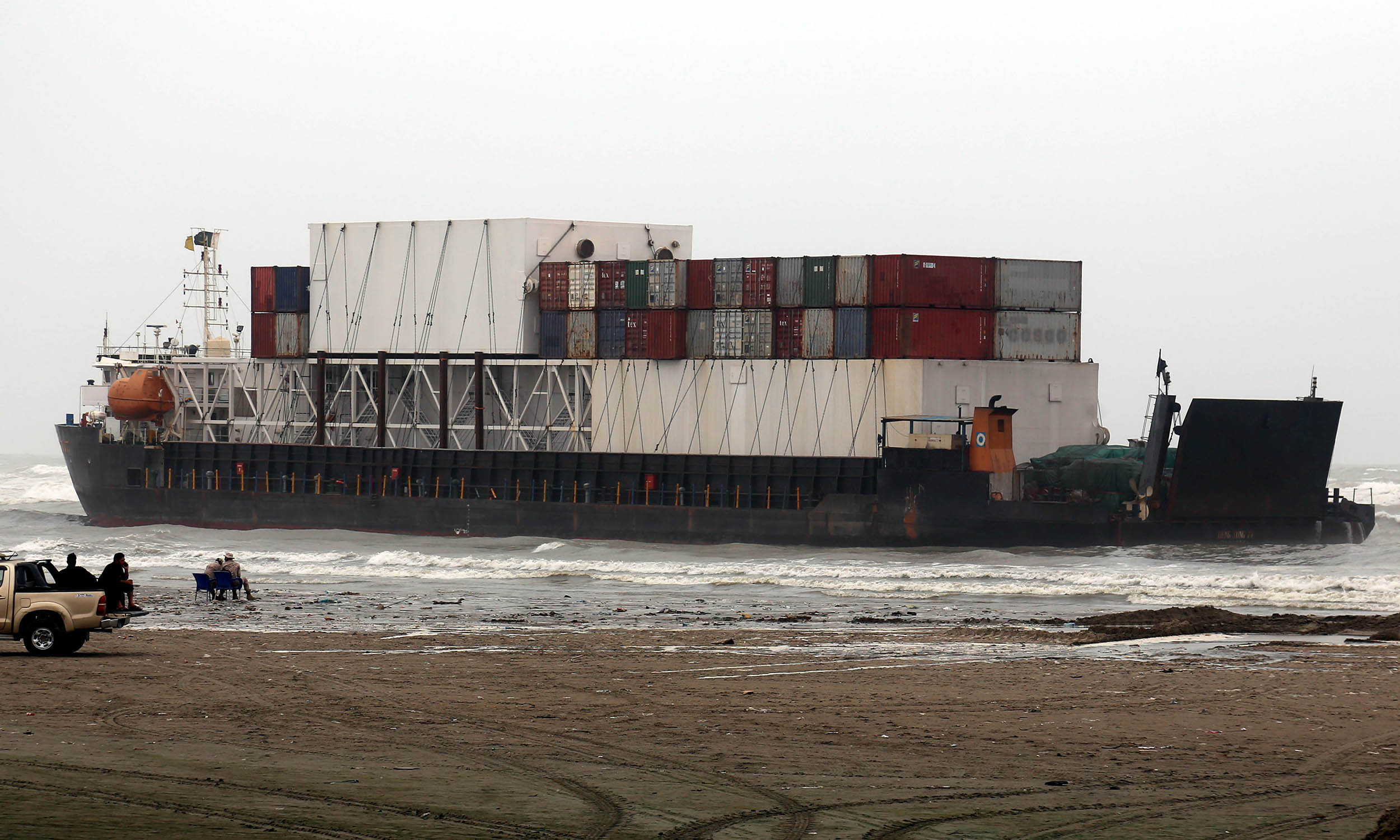 The cargo vessel was travelling to China from Istanbul when a mild sea storm caused it to lose its anchors and it started drifting towards the shore.