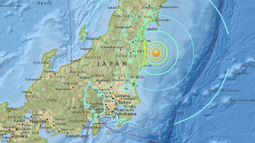 The quake occurred at around 2:46 a.m. local time, with its epicenter at a latitude of 40.0 degrees north and a longitude of 142.4 degrees east, and at depth of 50 km.