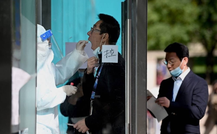 A health worker is taking swab sample from a Chinese man to test coronavirus. Image: AFP