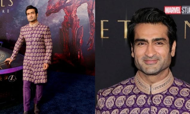 Hollywood’s beloved Kumail Nanjiani brings Pakistani desi fashion to the red carpet premiere of Marvel Studio’s Eternals on Monday as he nailed the sherwani looks from a designer based in his home country.