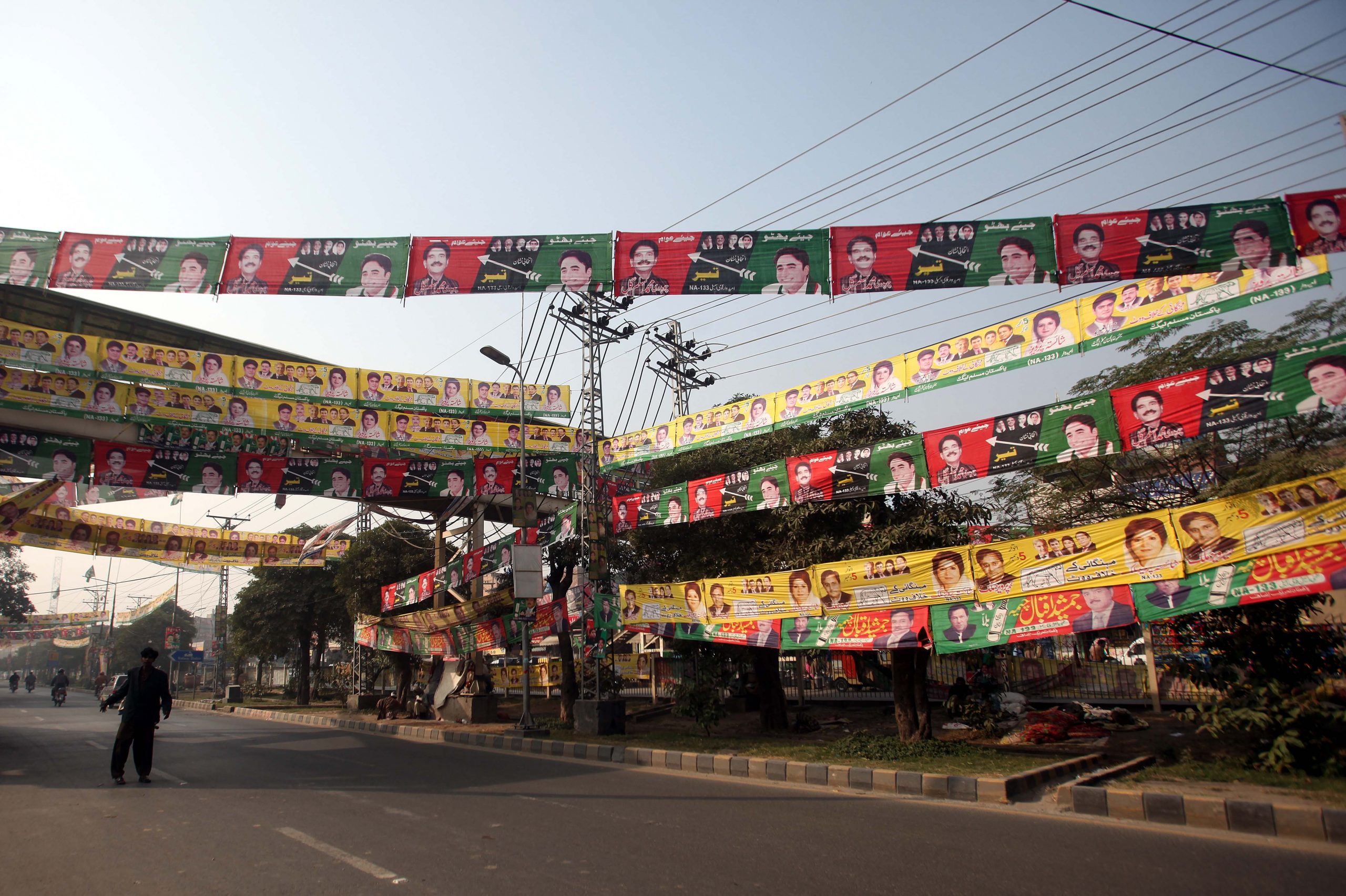 Banners of different candidates placed in the NA-133 constituency of Lahore. Photo: Mohsin Raza/Bol News