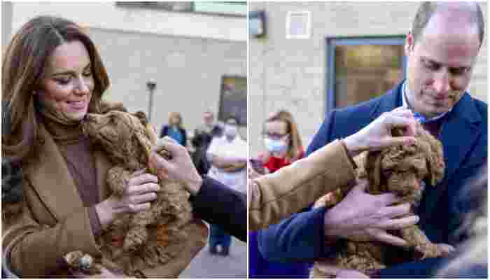 Kate and William meet a cockapoo puppy in Clitheroe Community Hospital