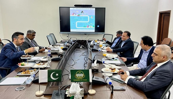 US Consul for Commercial Affairs John Coronado calls on CEO of Ravi Urban Development Authority Imran Amin in Lahore on Tuesday. Photo/ Bol News