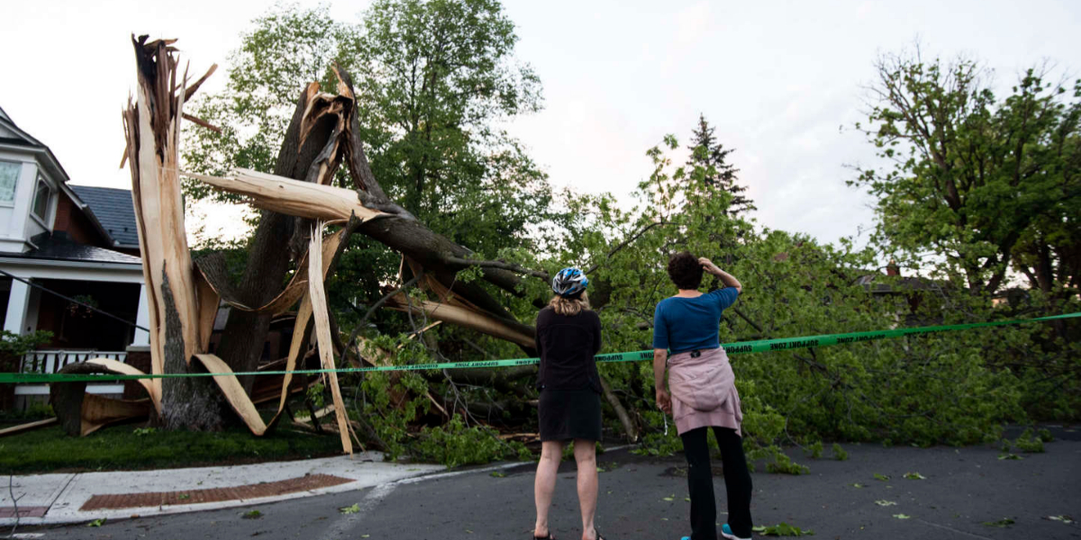 The storms, which lasted more than two hours and had the strength of a tornado, wreaked havoc in regions of Ontario and Quebec on Saturday afternoon. Trees were down, power poles were uprooted, and numerous metal transmission towers were toppled, according to utility firms.