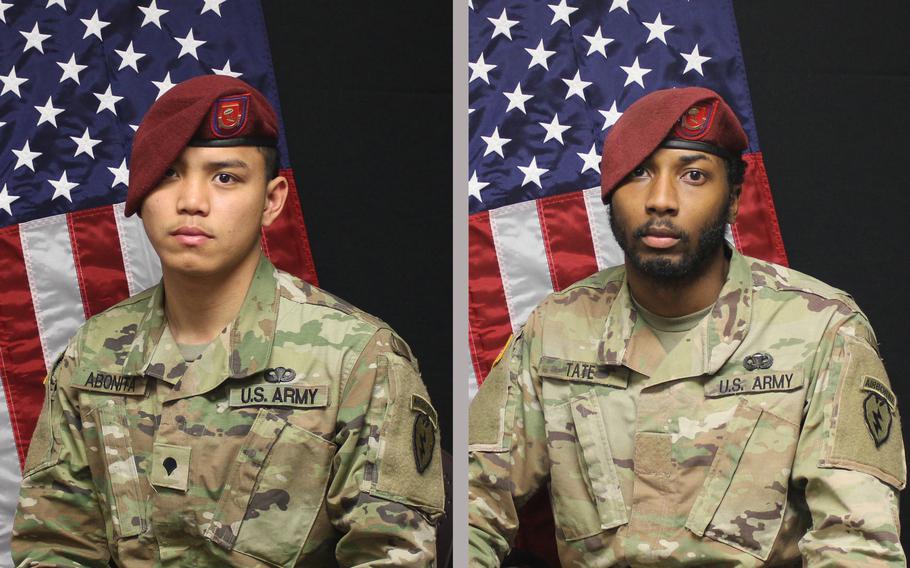 The US Army announced that Pvt. Valsin David Tate Jr., left, and Spc. Wyne Lyndon Jacob Abonita died in a multi-vehicle collision in Anchorage, Alaska.
