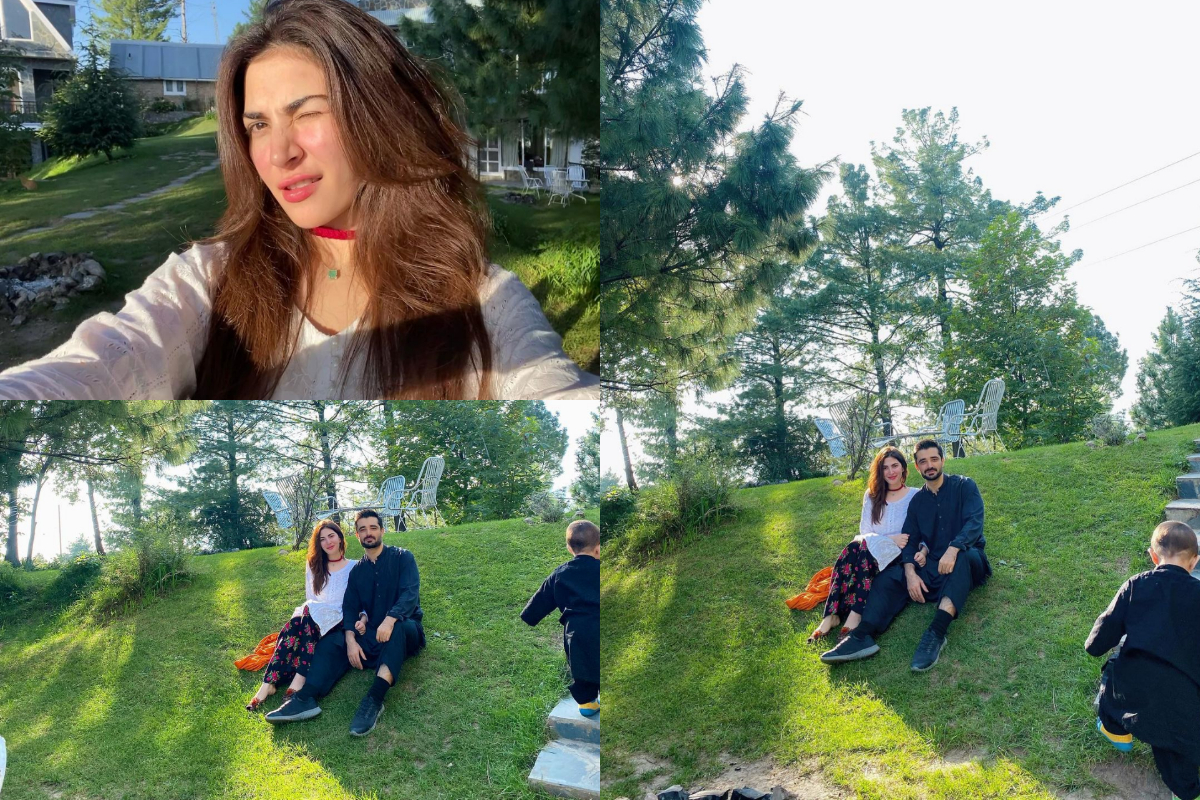 Khawar posted three photos from her trip to Nathia Gali with her husband, the “Pyarey Afzal” star, and their son, Mustafa Abbasi, on her Instagram account on Wednesday.