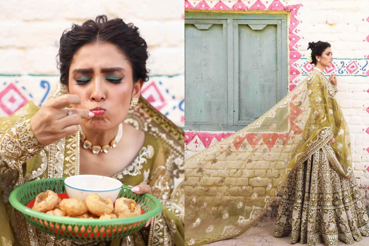 The photos from her fashion shoot have finally been released, and in them, a fashionably dressed Ayeza Khan can be seen engaging in a Gol Gappa.