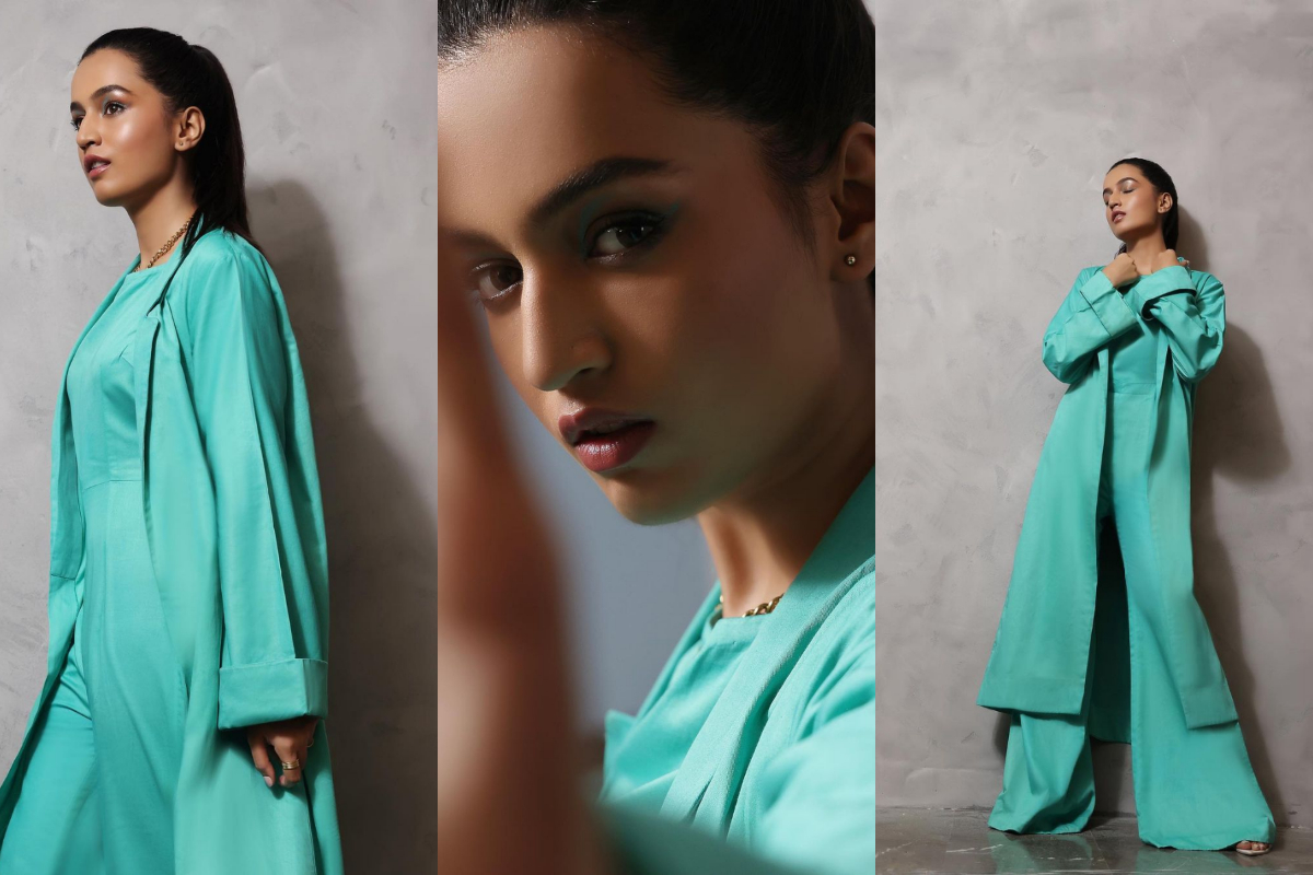 Hira khan shows off on in turquoise Co-ords! Giving us major fashion inspiration with her beautiful vanity with each of her looks and outfits, now the actor is setting goals for city dressing. Seen doing some sightseeing and enjoying the city life in a stunning single print co-ord set from clothing brand HSY.