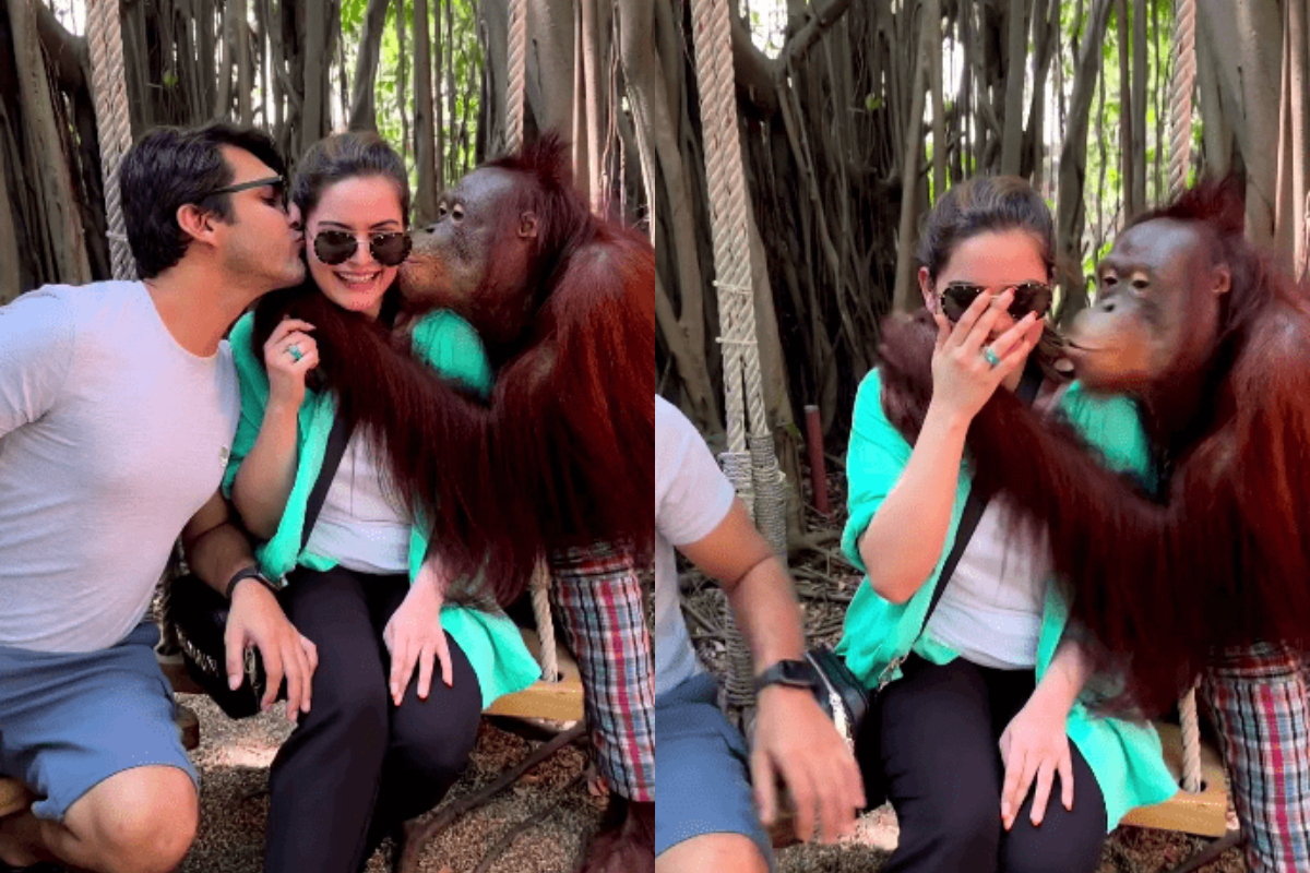 With a funny caption, Minal Khan has made us all laugh out loud. She went to her Instagram account and posted a picture of Ahsan Mohsin Ikram and a chimp kissing Minal Khan with all their hearts. Minal wrote on Instagram that she can’t choose between these two monkeys. That is really cute. This monkey also likes Minal Khan a lot.