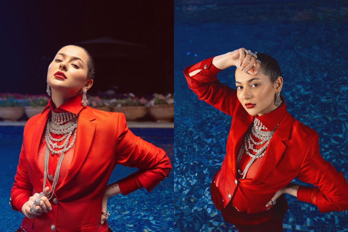 The 26-year-old posted numerous photos of herself wearing HSY while standing in a pool, lighting up Instagram with her daring appearance. The star was photographed flaunting expensive jewellery while wearing a red blazer, and she added to the glitter with a swipe of crimson lipstick.