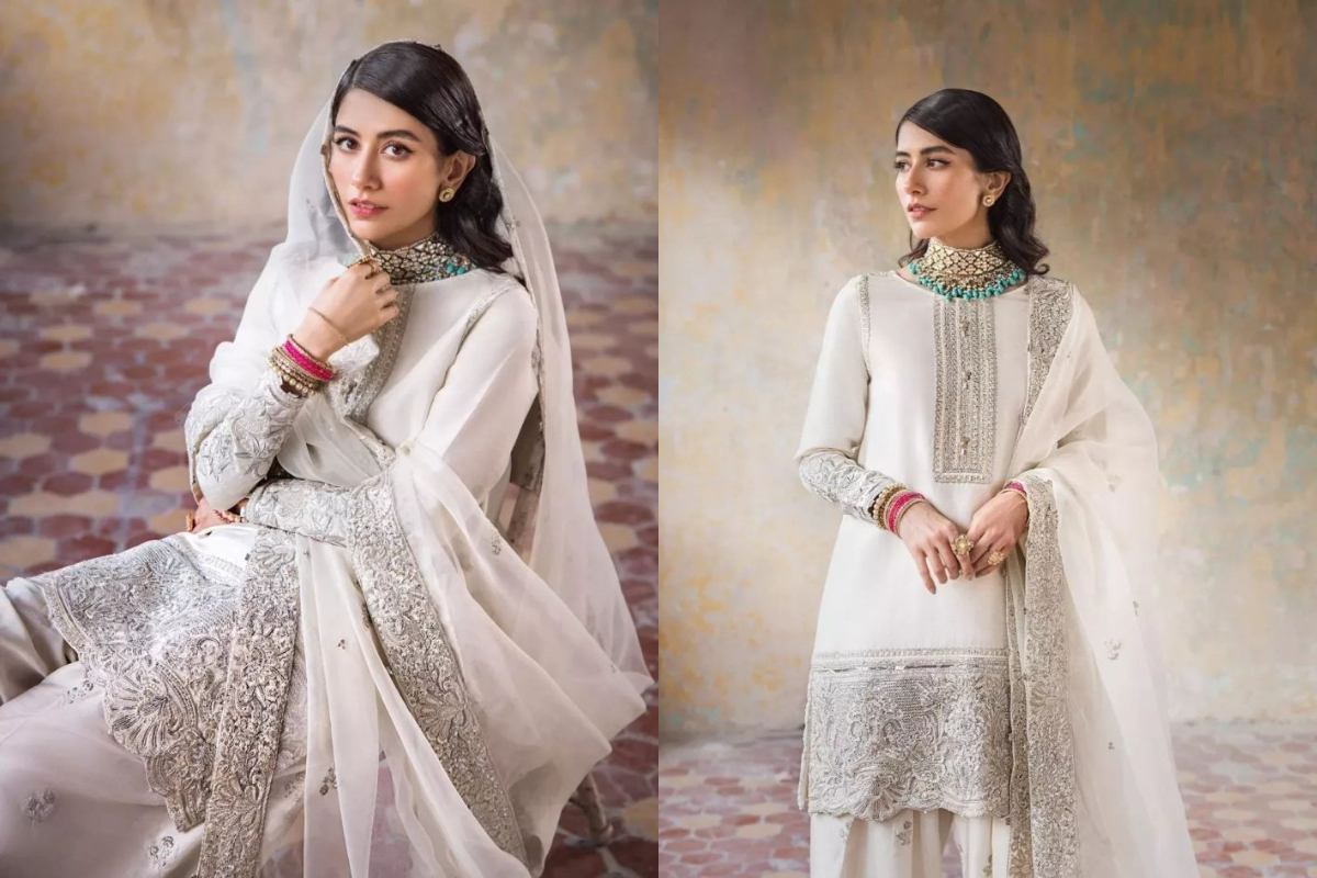 The elegant actress is dressed in all-white cloth for the most recent photoshoot for the newest collection, which evokes the angelic appearance of this stunning costume.