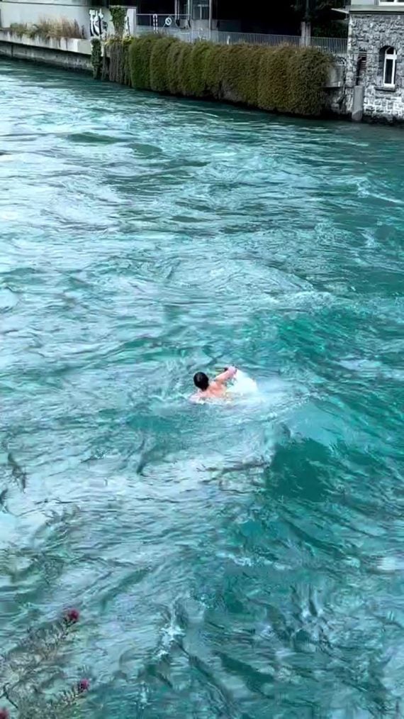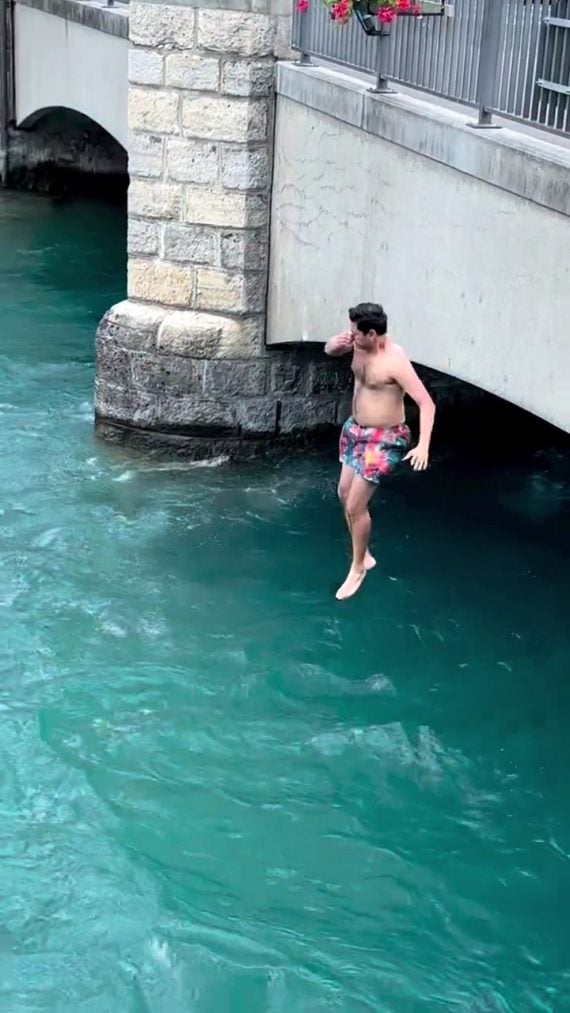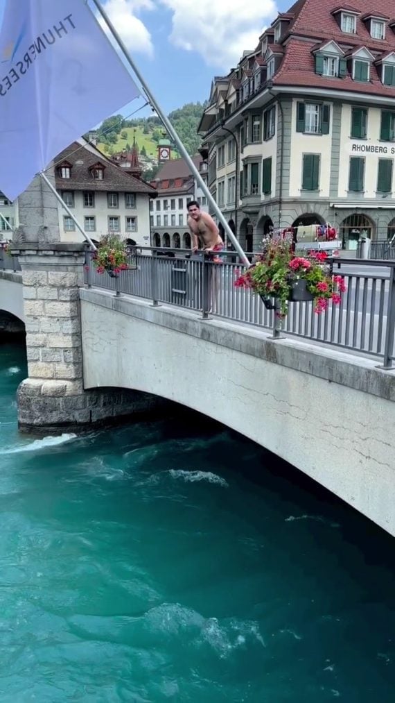 During his vacation in Switzerland, he engaged in a legal activity by leaping off a bridge into a river. He emphasized in the comments that he is proficient in swimming.
